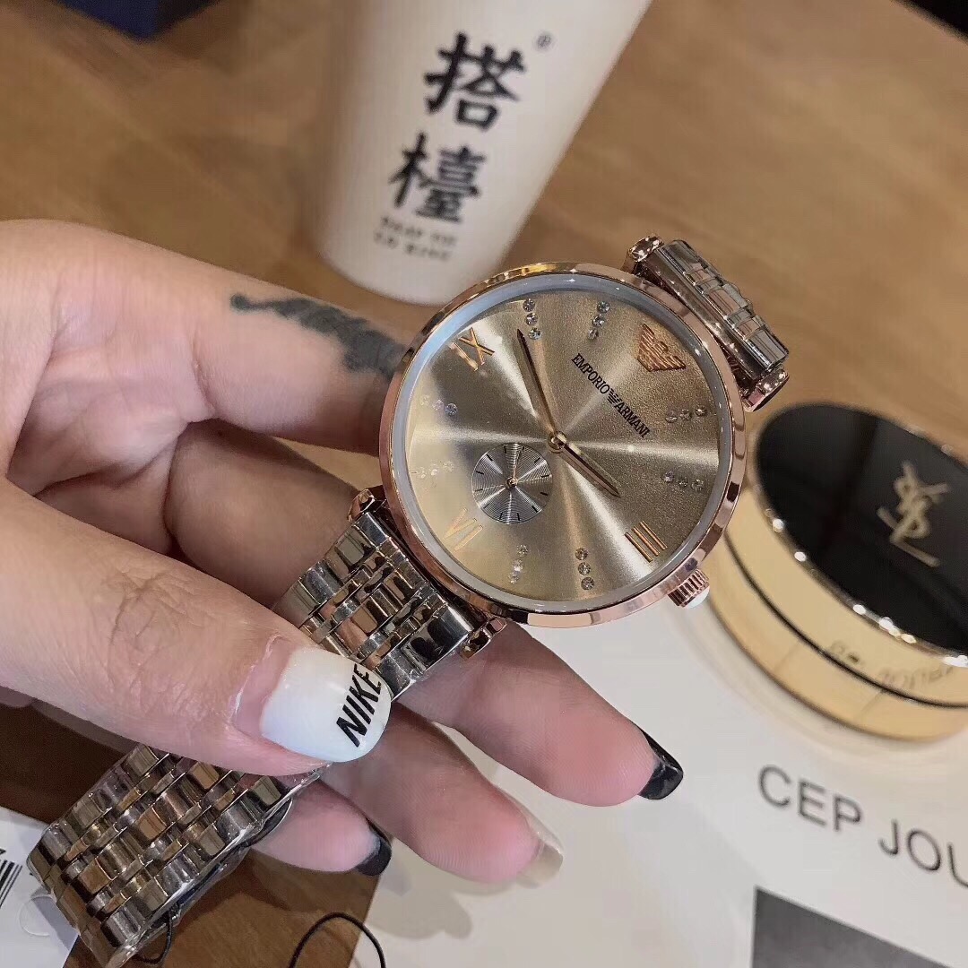 Armani, the fashion capital of Italy, leads the trend in Milan. The overall design is small and slender, with a rounded outline that perfectly enhances the wearer's charm; The gentle and subtle pearl fritillaria, combined with the three-dimensional pointer, shines against each other, and is crafted with meticulous polishing, presenting an extraordinary taste of flowing light and brilliance. The strap adopts a butterfly shaped buckle, which fits the wrist better and enjoys excellent quality. Size 32mm * 9mm+40mm * 9mm
