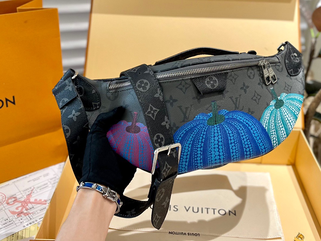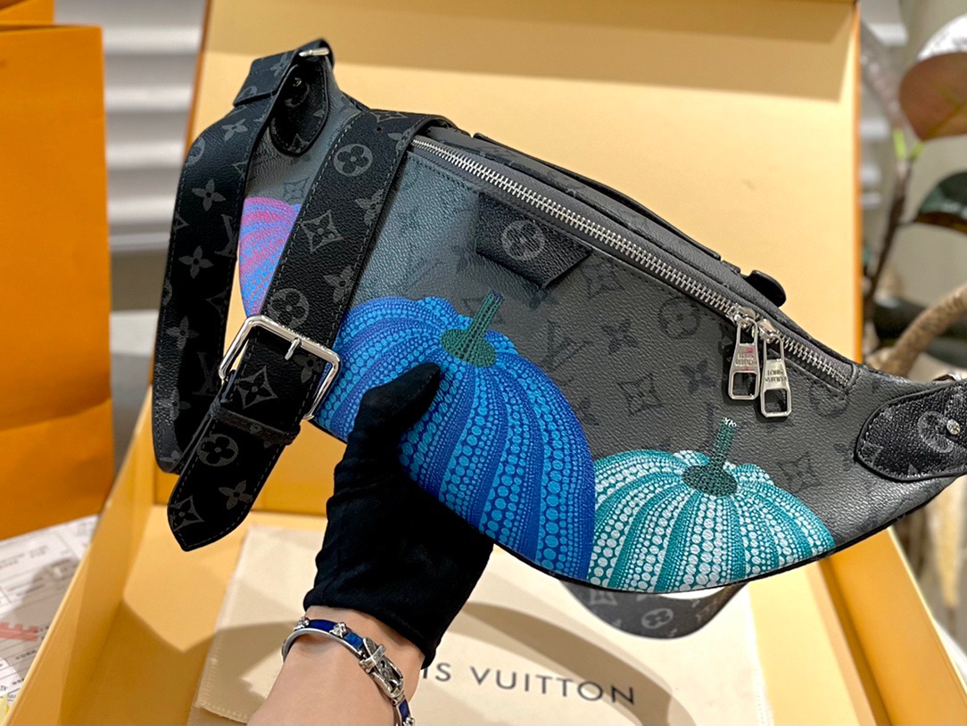 Lv Yayoi Kusama Yasheng Co branded Series Colorful Pumpkin Pattern Chest Bag Waist Bag Size 43 * 16cm Unisex