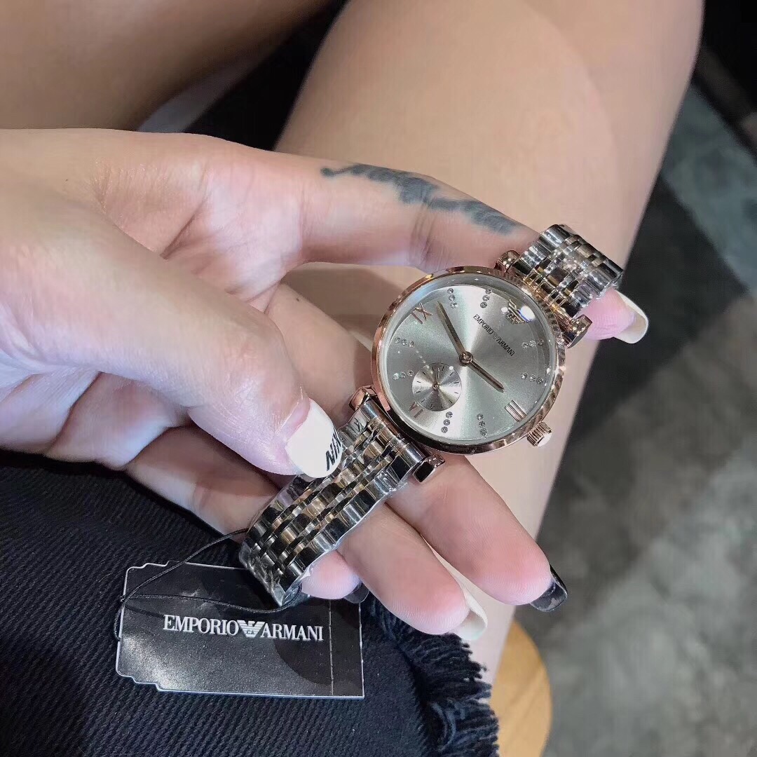 Armani, the fashion capital of Italy, leads the trend in Milan. The overall design is small and slender, with a rounded outline that perfectly enhances the wearer's charm; The gentle and subtle pearl fritillaria, combined with the three-dimensional pointer, shines against each other, and is crafted with meticulous polishing, presenting an extraordinary taste of flowing light and brilliance. The strap adopts a butterfly shaped buckle, which fits the wrist better and enjoys excellent quality. Size 32mm * 9mm+40mm * 9mm