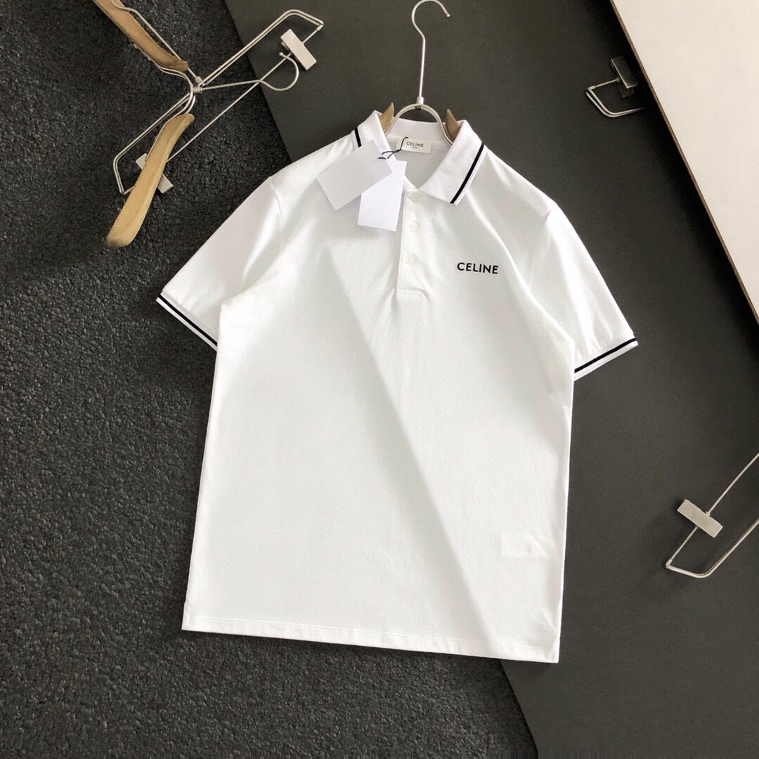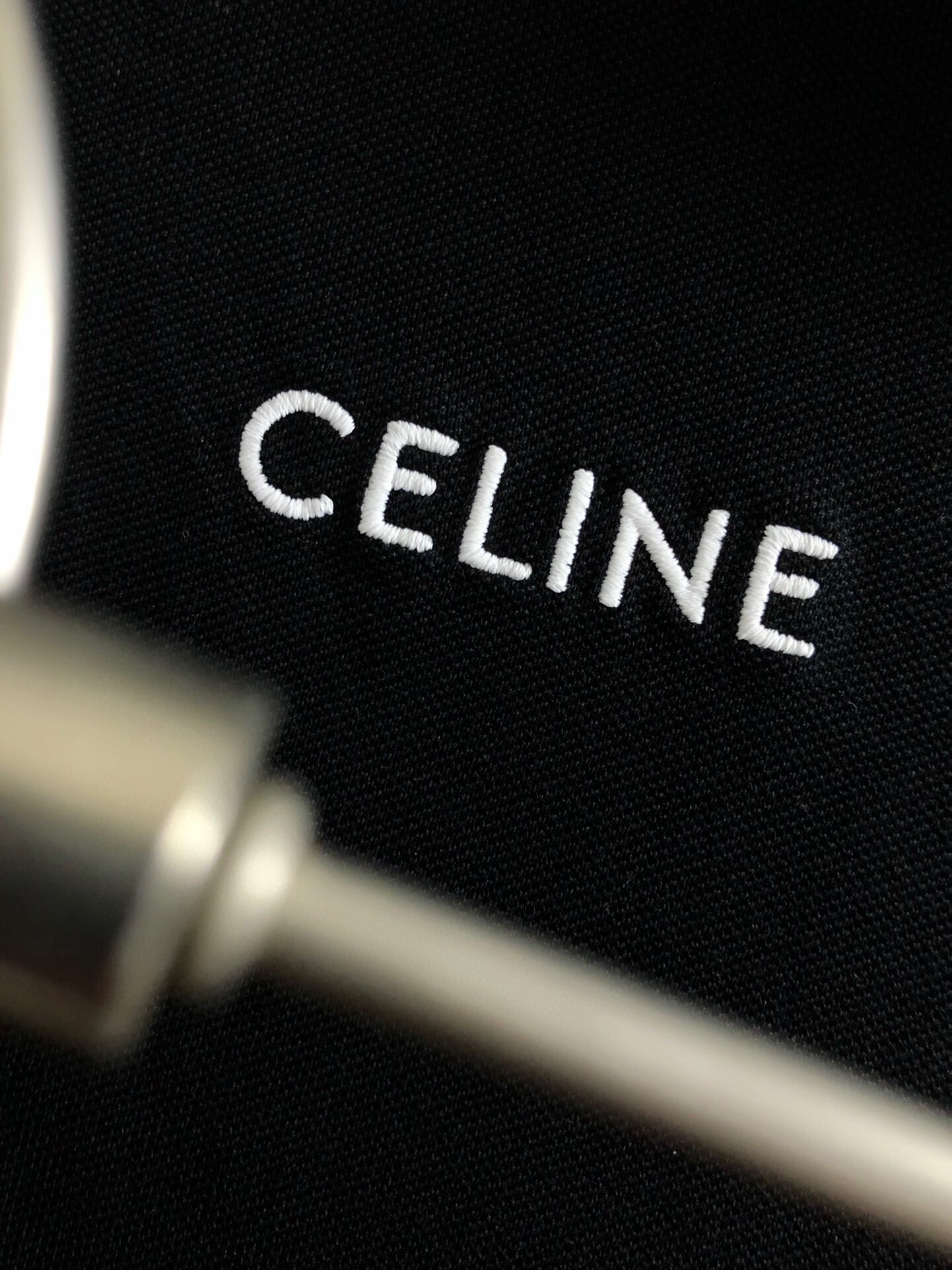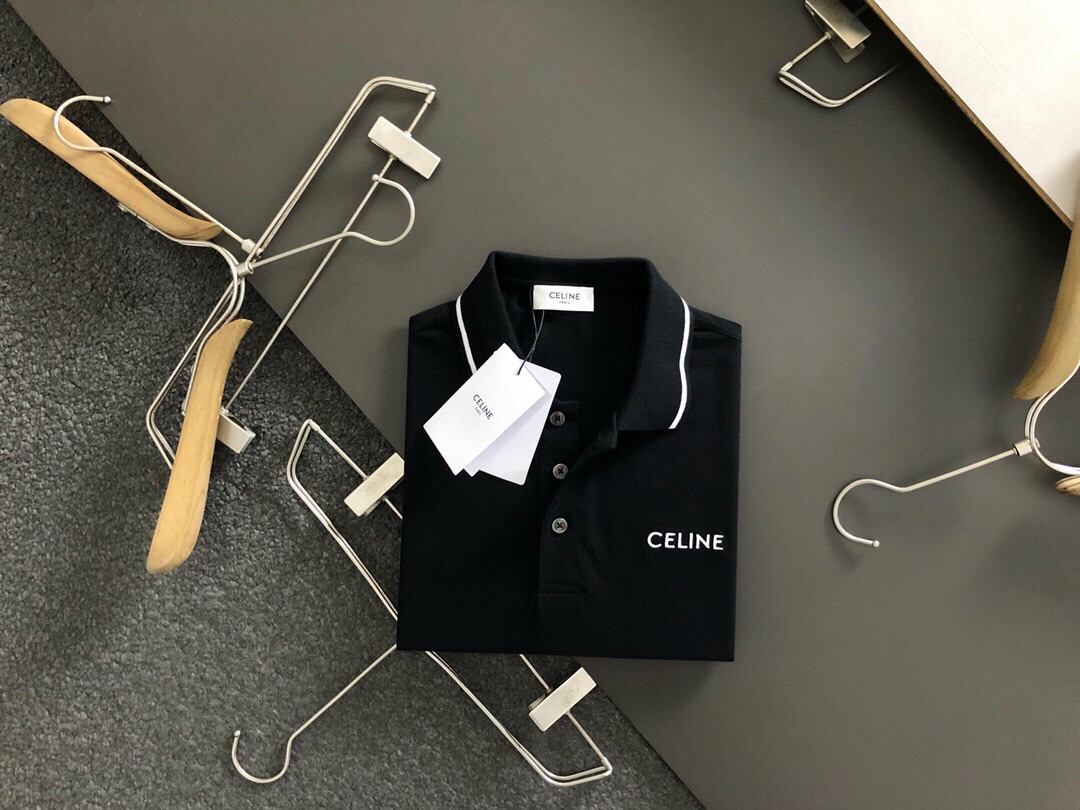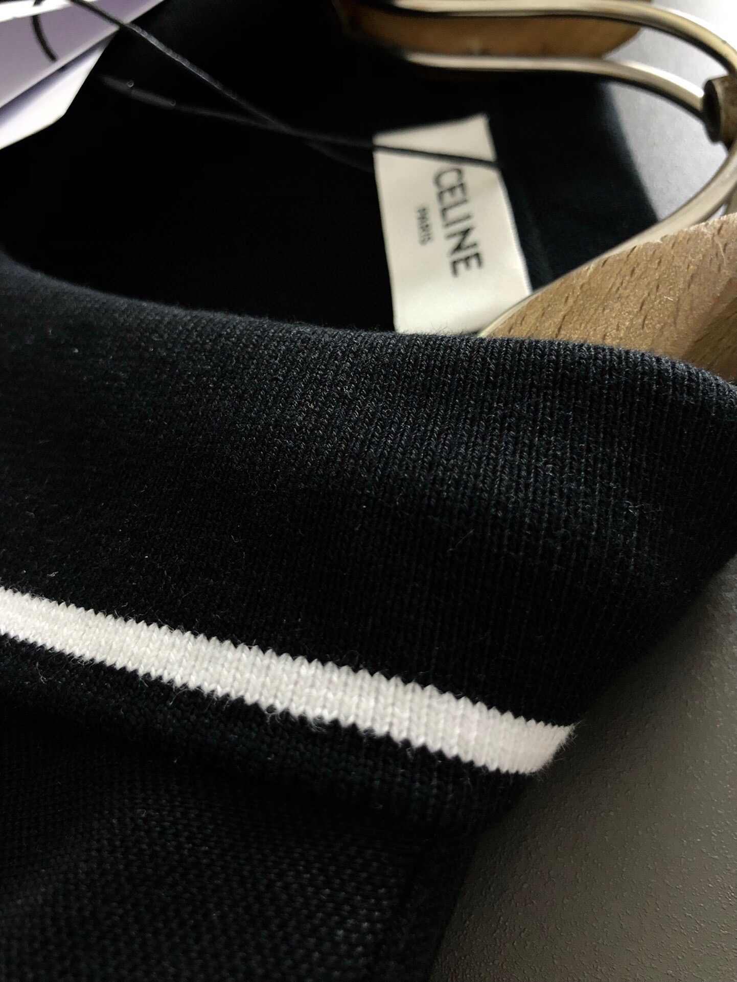 New Celine Top grade black three-dimensional thorn simple embroidered polo lapel short sleeve