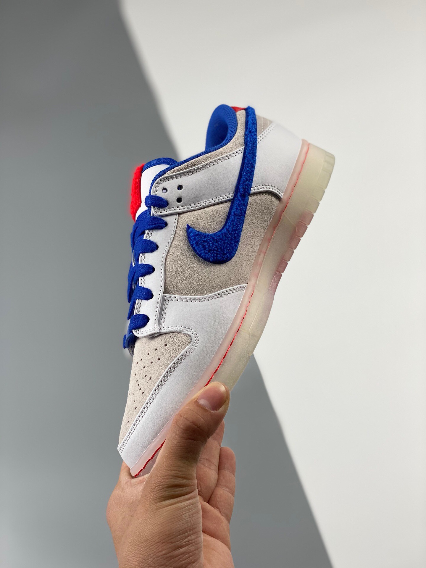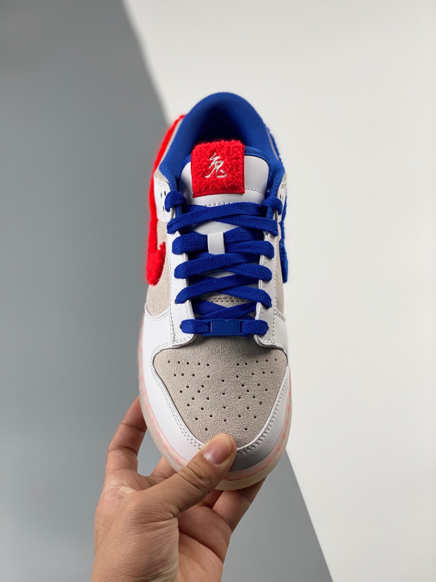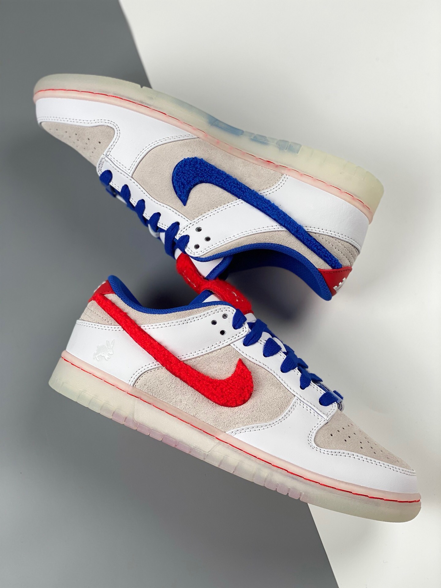 DetailG version nk dunk sb low rabbit year white, red, blue, and white rabbits are produced by the original factory. The first batch of original head layer materials is produced by the original factory. Exclusive version distillation processing brings better visual and foot feeling experience. The factory's pure original quality shipment is clean, and the leather is cut clean without any burrs. Perfect product number: fb7160-161