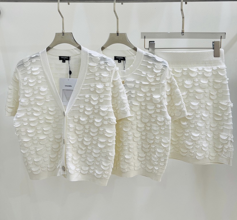 DetailExclusive Launch ❤️ Chanel23 Summer New Simple Fragrance Style Reduced Age Fish Scale Knitted Short Sleeve ➕ Half skirt, a must-have item for white richness and beauty, with high-end quality and detailed live shot display